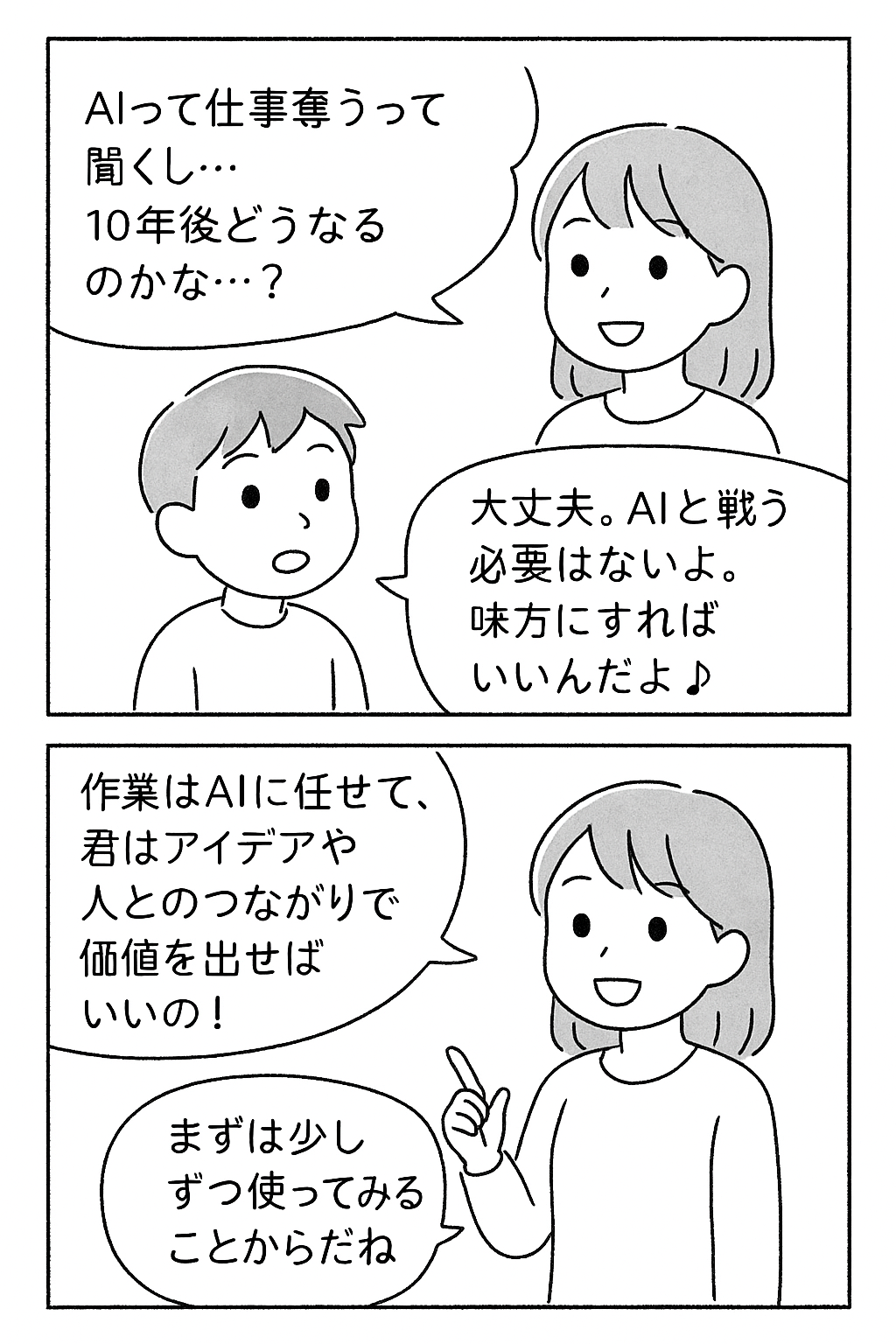 “AIに勝つ”のではなく、“AIと一緒に価値を生み出す人”になれば、10年後も困らない。